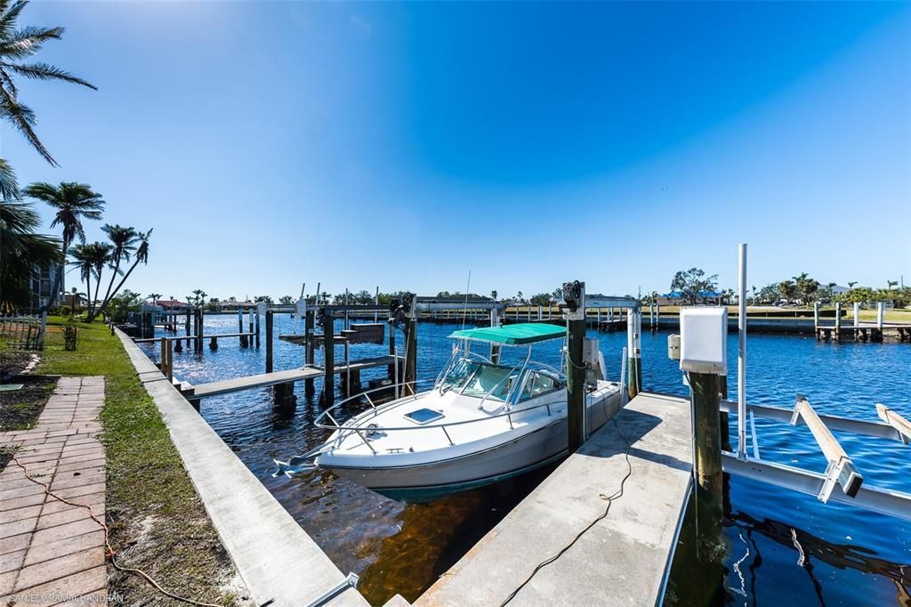 SEASONAL / SHORT-TERM RENTAL- Minimum 3 months. LOCATION! LOCATION! LOCATION! This turnkey furnished penthouse condo is centrally located, only walking distance to Isles Yacht Club, Fisherman's' Village etc. Comes with a deeded dock and boatlift and only minutes away from the open waters of Charlotte Harbor. Very close to Historic Downtown, parks, waterfront dining, shopping etc. 2 under the building secured assigned parking spots. From the moment you walk into the foyer and then into this open concept floor plan you will see lovely appointments such as crown molding, chair rail and Wayne's coating. The interior features 10 ft ceilings, 8 ft Sliders with impact glass, diagonal tile throughout the living area, kitchen, master bedroom and bathrooms. Newer laminate floors in both guest bedrooms. All bedrooms offer Plantation Shutters. Updated gourmet kitchen with granite countertops, wood cabinetry and stainless-steel appliances. The spacious Master Bedroom is 13x17 with a large walk-in closet and the Master Bath has a Roman Shower, double sinks, vanity and a private water closet as well as another large clothing closet. Third bedroom is furnished as an office. 12% tax apply for all rentals 6 months or less.