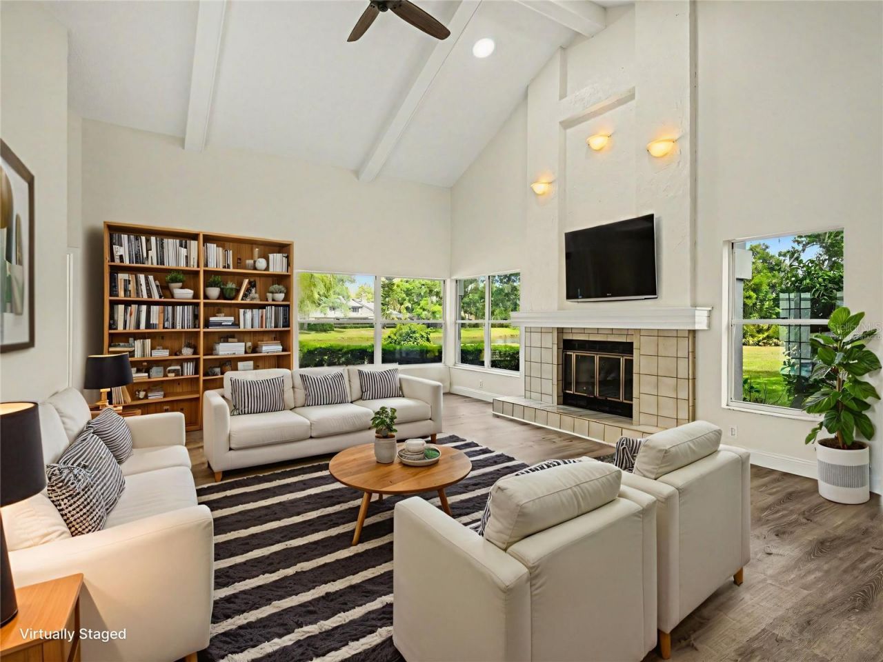 One or more photo(s) has been virtually staged. Luxurious Lakefront Living in The Woodlands of Bent Tree!This beautiful home offers a private setting on over half an acre, backing onto a spring-fed lake in the gated Woodlands of Bent Tree. Nestled in an A-rated school district and surrounded by lush landscaping, this property combines elegance, comfort, and convenience in one perfect package.Featuring 4 bedrooms, 3 baths, a 2-car side-entry garage, and a brand new roof, the split plan design showcases both functionality and style. Enjoy formal living and dining rooms, a spacious family room with soaring ceilings, a fireplace, and a stylish wet bar. The chef's eat-in kitchen is a showstopper with quartz countertops, stainless steel appliances, and direct access to the family room-ideal for gatherings and entertaining.Your expansive primary suite includes a spa-inspired bath with dual sinks, a jetted garden tub, large walk-in shower, and generous walk-in closet. Secondary bedrooms are equally spacious, offering flexibility for guests, family, or office space.Step outside to your private oasis: a screened pool and spa overlooking breathtaking lake views, with plenty of room to relax or entertain. The expansive backyard provides additional space to enjoy the outdoors. Just a short golf cart ride to Bent Tree Country Club or Laurel Oak Country Club, and minutes from Siesta Key Beach, UTC Mall, downtown Sarasota, shopping, and dining-this home has it all.Don't miss this rare opportunity to own in The Woodlands of Bent Tree-schedule your private showing today and fall in love with the perfect blend of luxury, privacy, and natural beauty!